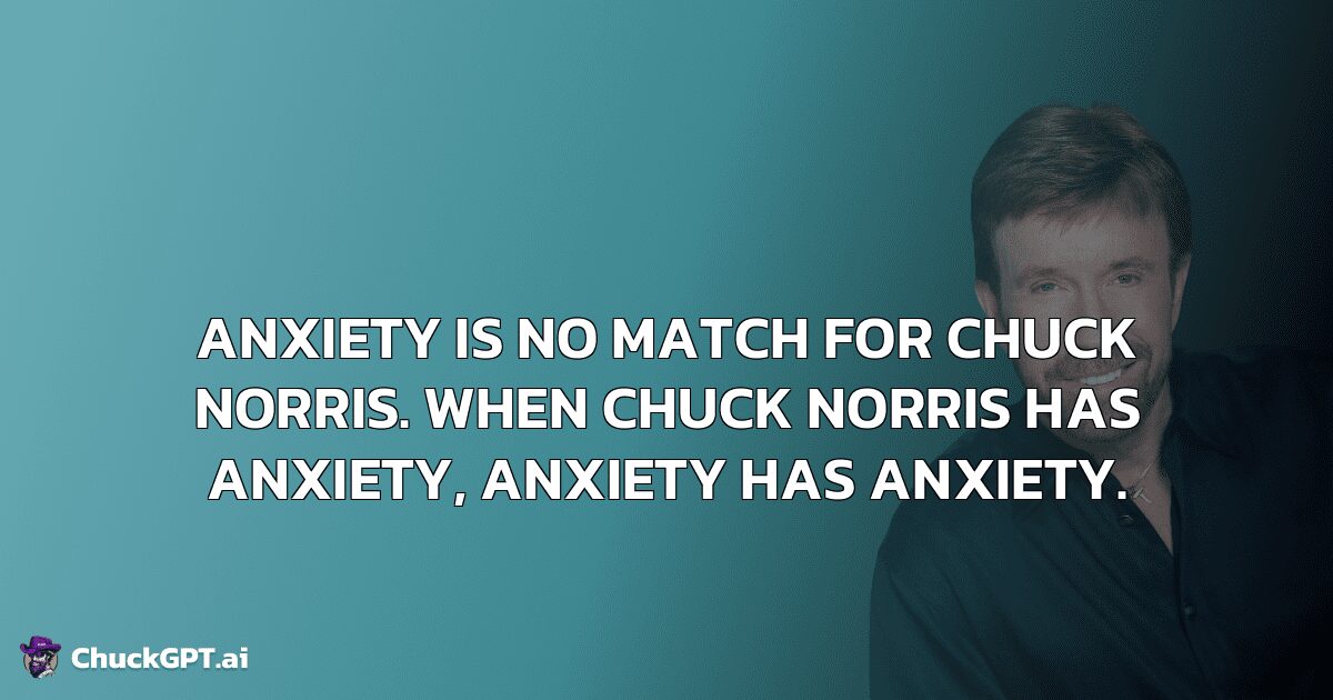 Anxiety is no match for Chuck Norris. When Chuck Norris has anxiety, anxiety has anxiety.