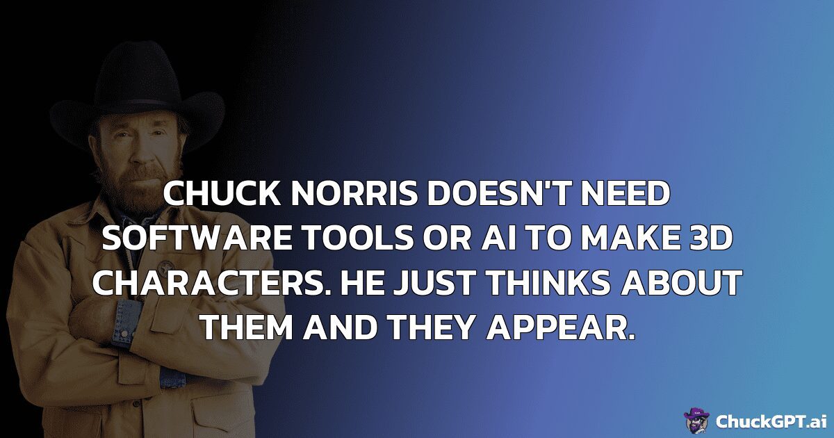 Chuck Norris doesn’t need software tools or AI to make 3D characters. He just thinks about them and they appear.