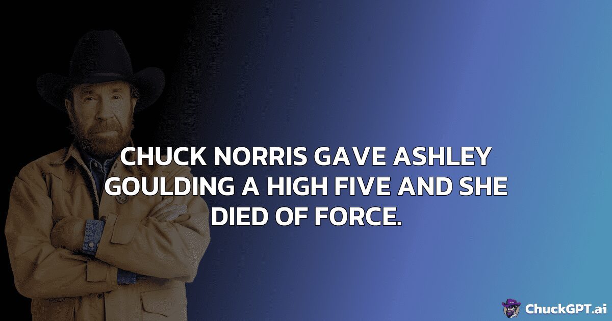 Chuck Norris gave Ashley Goulding a high five and she died of force.