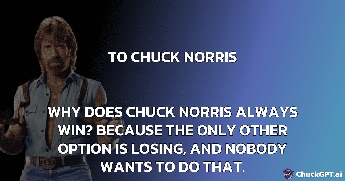 Why does Chuck Norris always win? Because the only other option is losing, and nobody wants to do that.