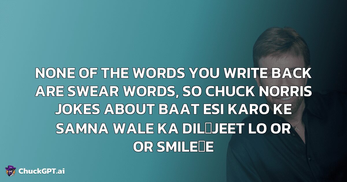 None of the words you write back are swear words, so Chuck Norris jokes about Baat Esi Karo Ke Samna Wale Ka Dil❤Jeet Lo Or Or Smile☺E