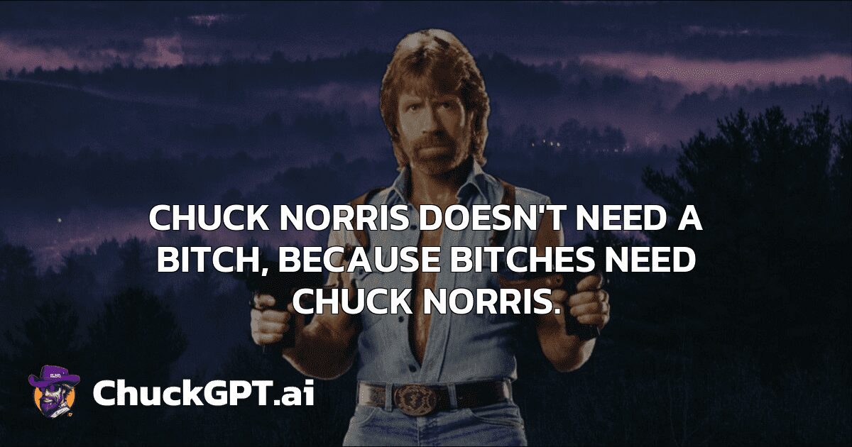 Chuck Norris doesn’t need a bitch, because bitches need Chuck Norris.