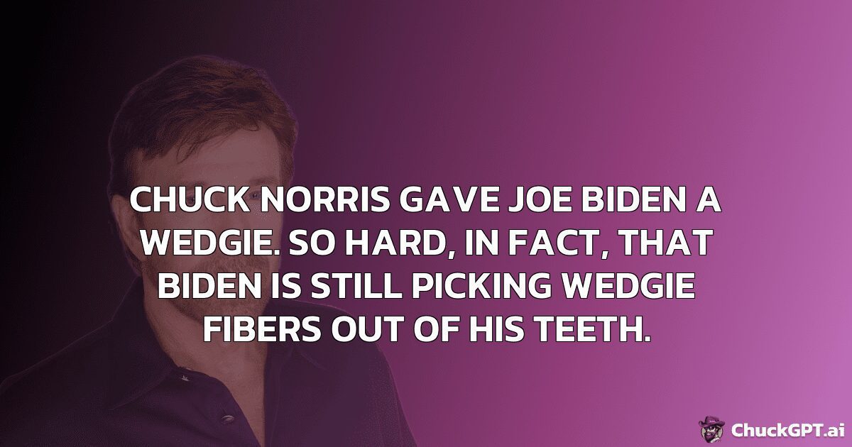 Chuck Norris gave Joe Biden a wedgie. So hard, in fact, that Biden is still picking wedgie fibers out of his teeth.