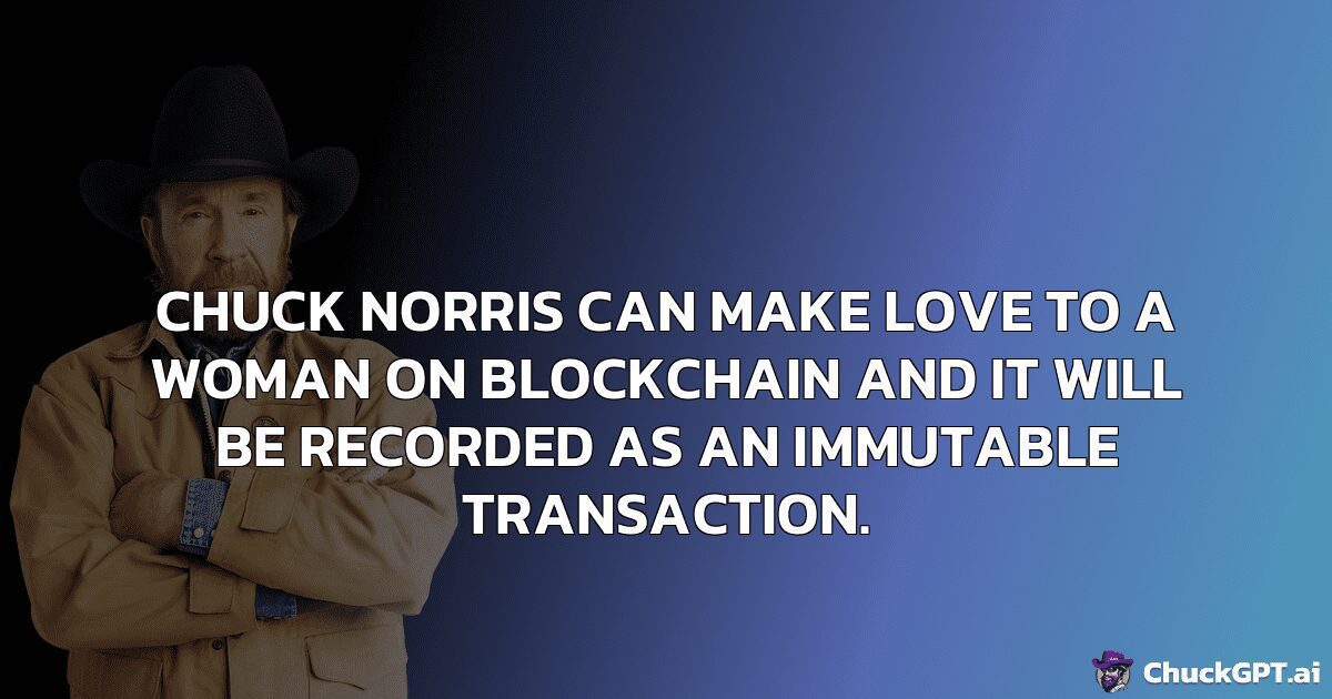 Chuck Norris can make love to a woman on blockchain and it will be recorded as an immutable transaction.