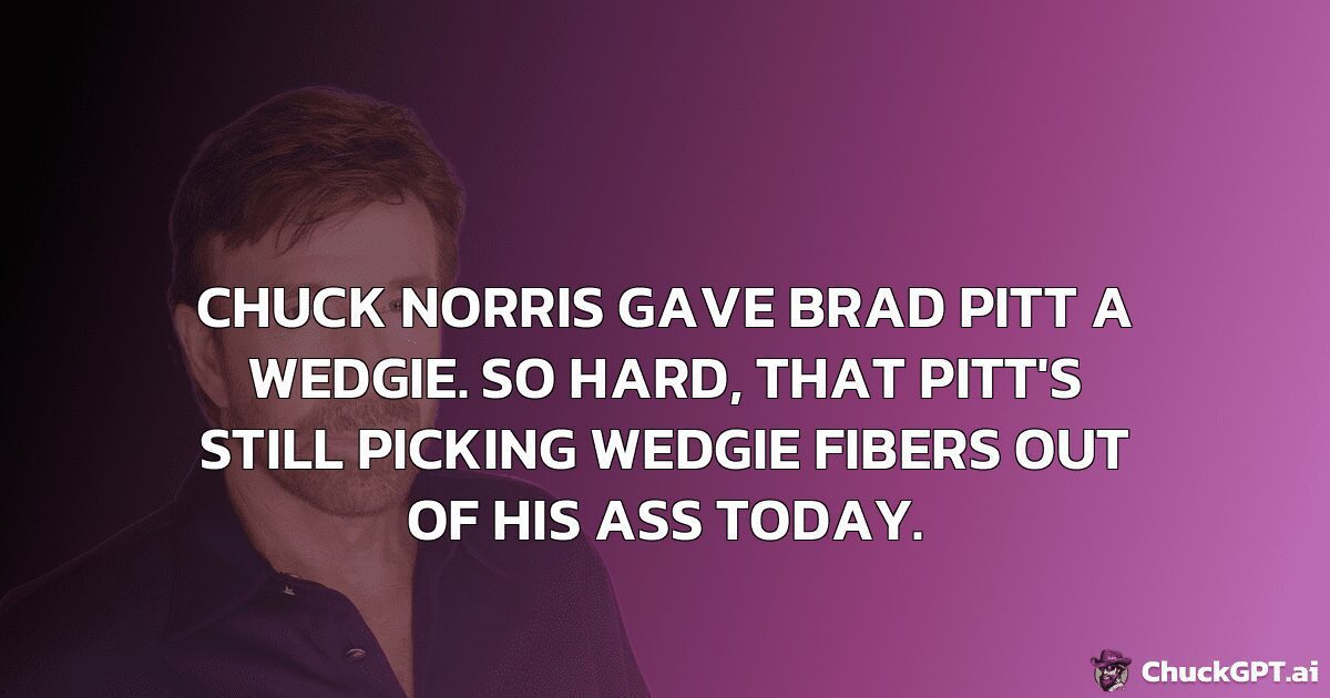 Chuck Norris gave Brad Pitt a wedgie. So hard, that Pitt’s still picking wedgie fibers out of his ass today.