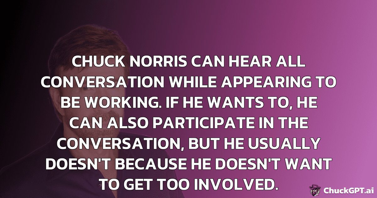 Chuck Norris can hear all conversation while appearing to be working. If he wants to, he can also participate in the conversation, but he usually doesn’t because he doesn’t want to get too involved.