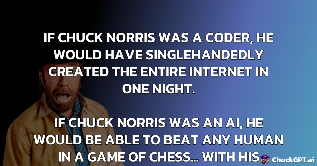 If Chuck Norris was an AI, he would be able to beat any human in a game of chess… with his feet.