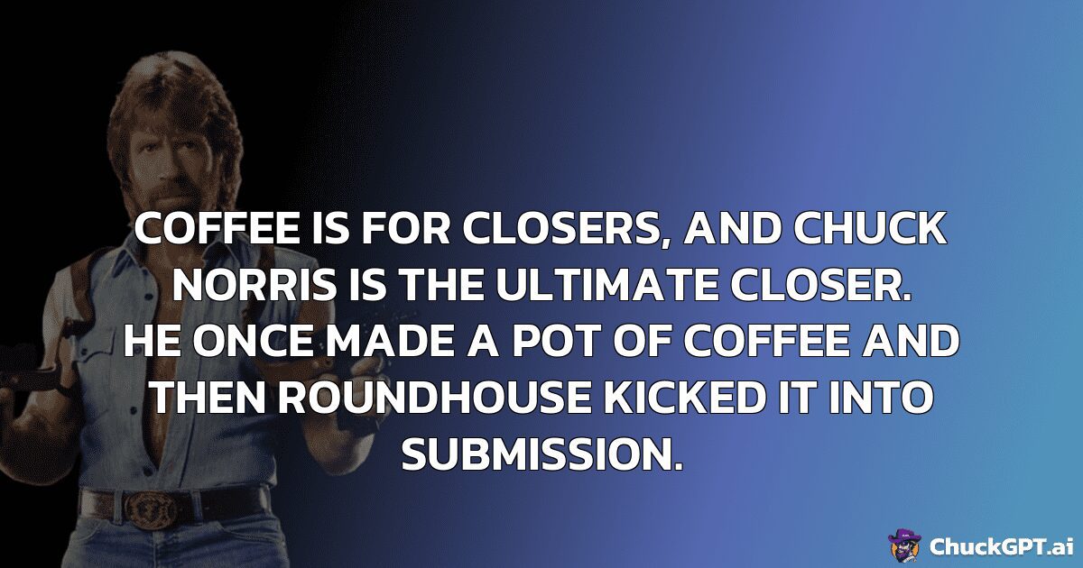 Coffee is for closers, and Chuck Norris is the ultimate closer. He once made a pot of coffee and then roundhouse kicked it into submission.