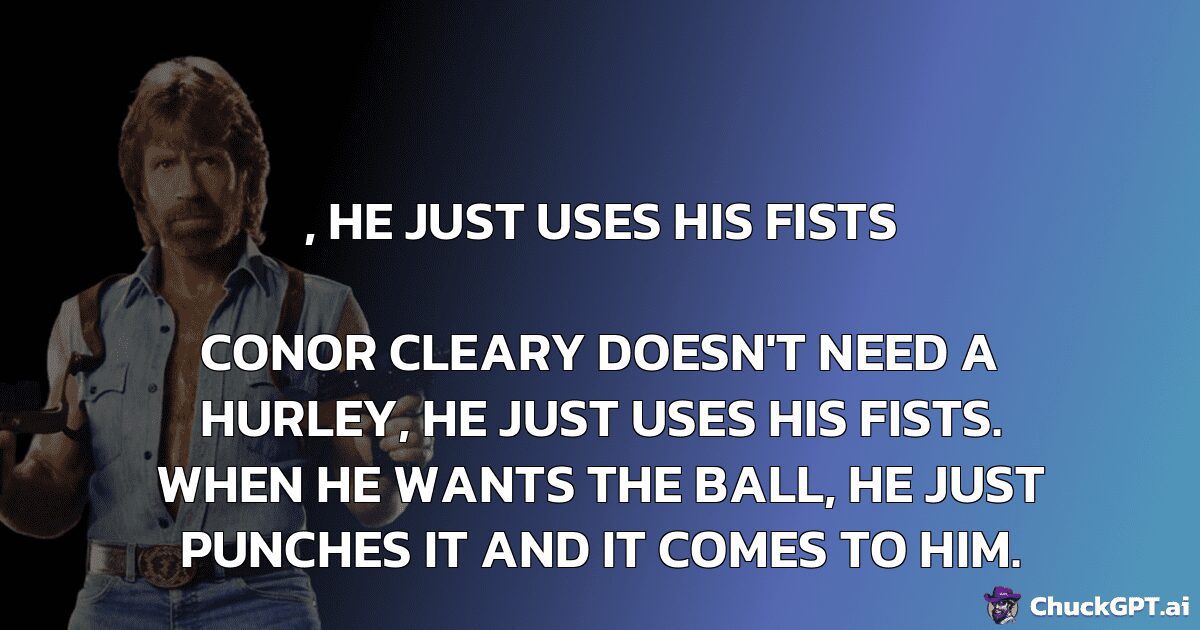 Conor Cleary doesn’t need a hurley, he just uses his fists. When he wants the ball, he just punches it and it comes to him.