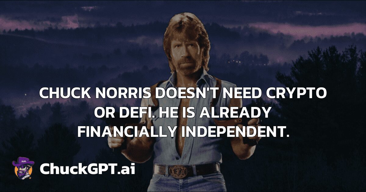 Chuck Norris doesn’t need crypto or defi. He is already financially independent.