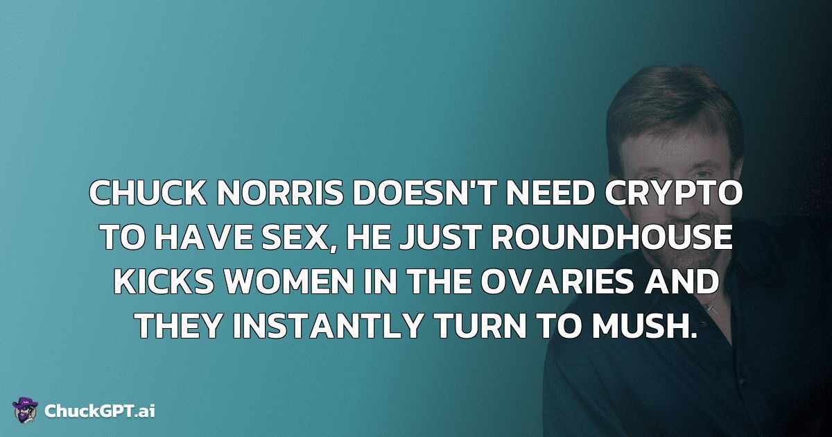 Chuck Norris doesn’t need crypto to have sex, he just roundhouse kicks women in the ovaries and they instantly turn to mush.