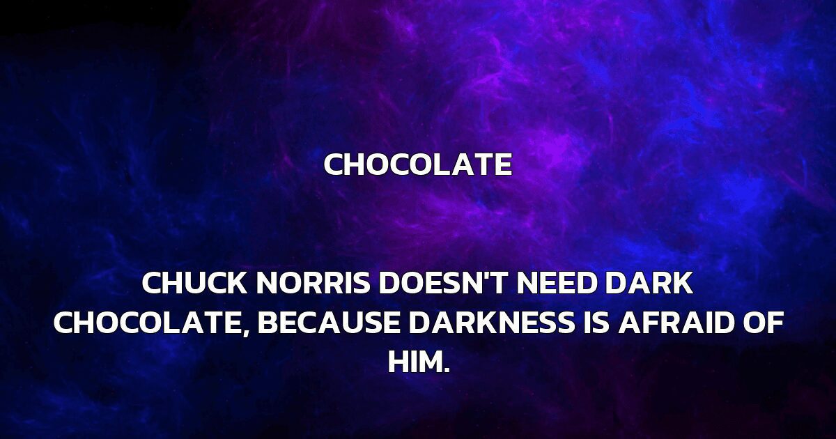Chuck Norris doesn’t need dark chocolate, because darkness is afraid of him.