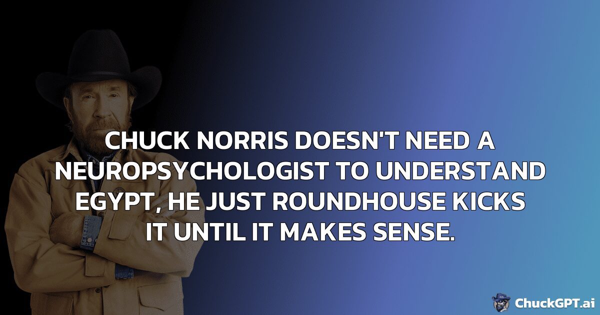 Chuck Norris doesn’t need a neuropsychologist to understand Egypt, he just roundhouse kicks it until it makes sense.