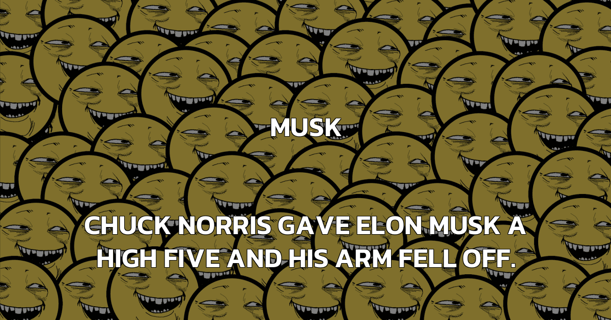 Chuck Norris gave Elon Musk a high five and his arm fell off.