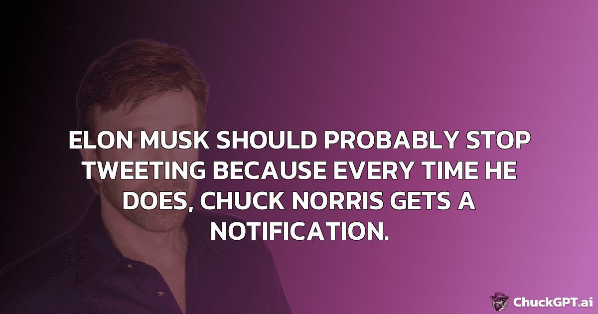 Elon Musk should probably stop tweeting because every time he does, Chuck Norris gets a notification.