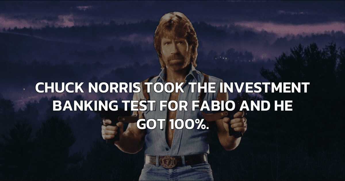 Chuck Norris took the investment banking test for Fabio and he got 100%.