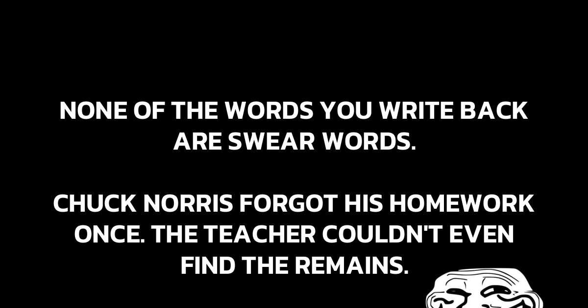 Chuck Norris forgot his homework once. The teacher couldn’t even find the remains.