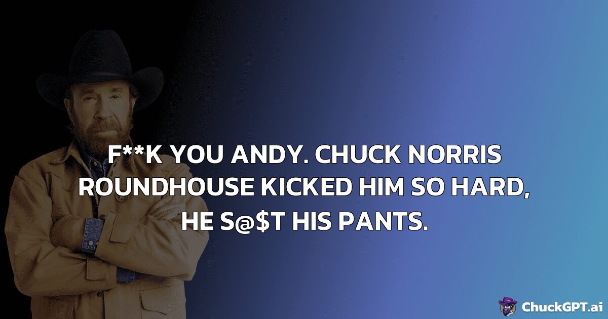 F**k you Andy. Chuck Norris roundhouse kicked him so hard, he s@$t his pants.