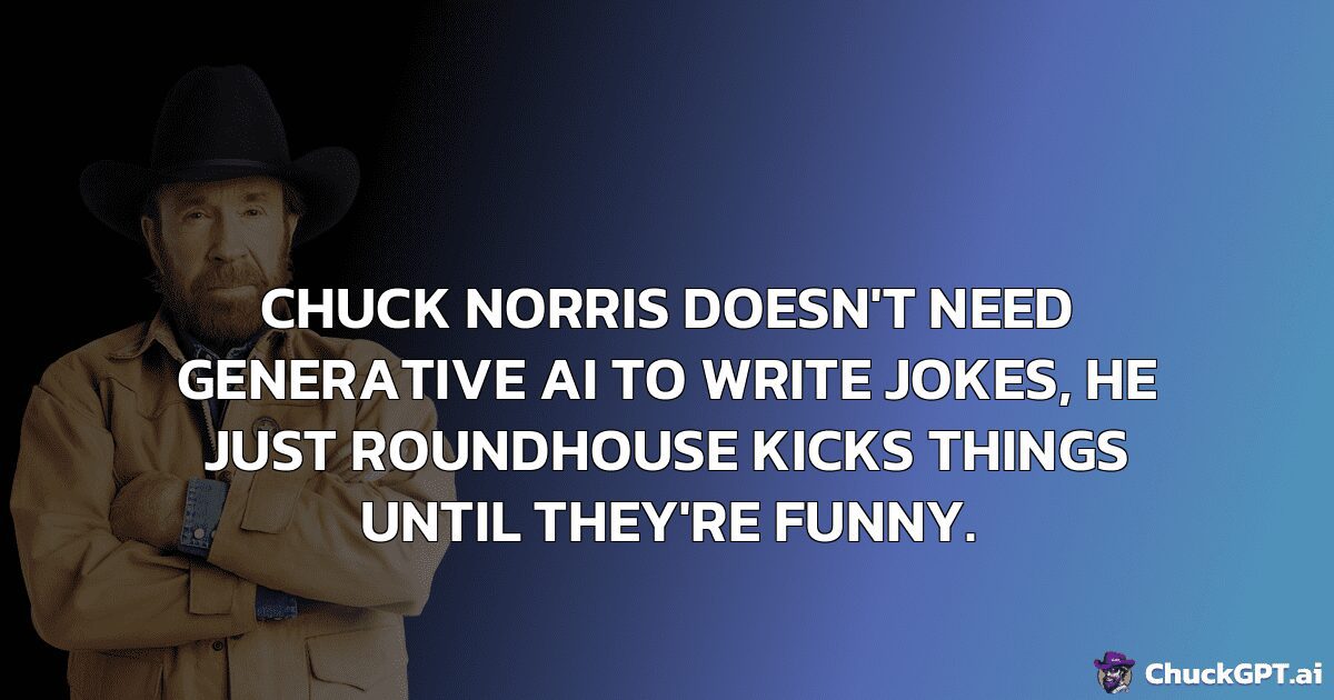 Chuck Norris doesn’t need generative AI to write jokes, he just roundhouse kicks things until they’re funny.