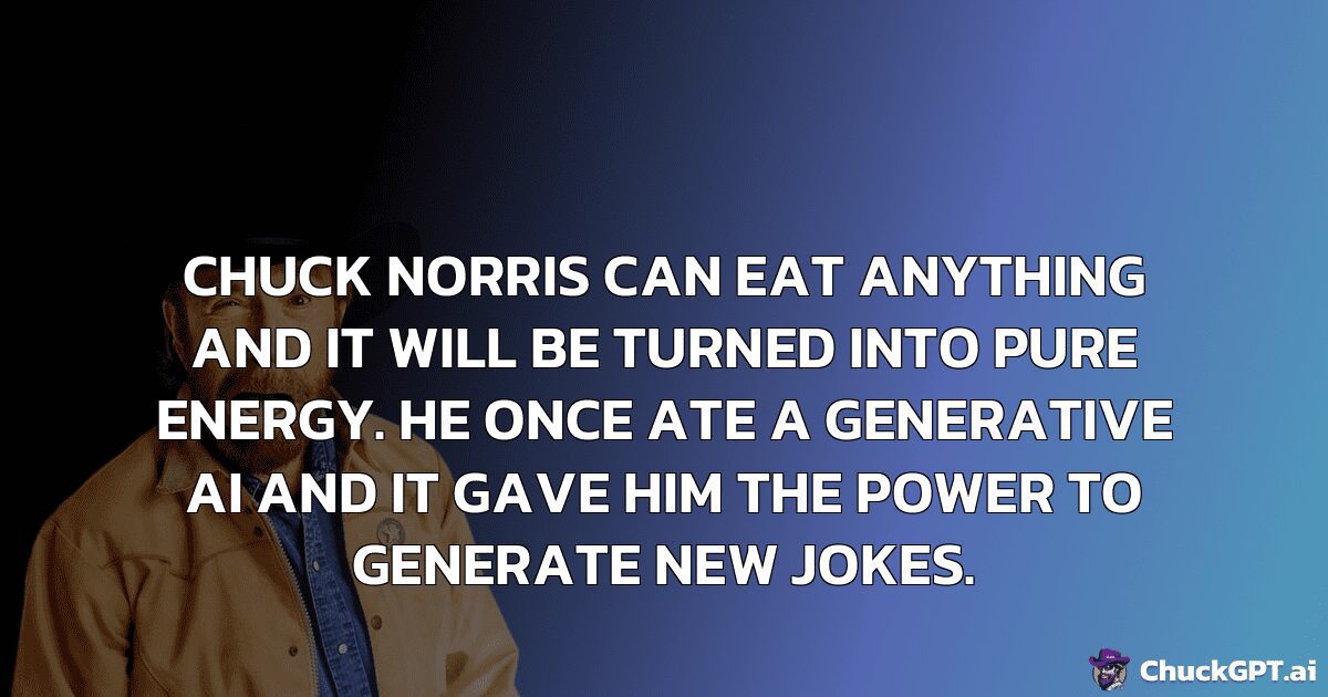 Chuck Norris can eat anything and it will be turned into pure energy. He once ate a Generative AI and it gave him the power to generate new jokes.