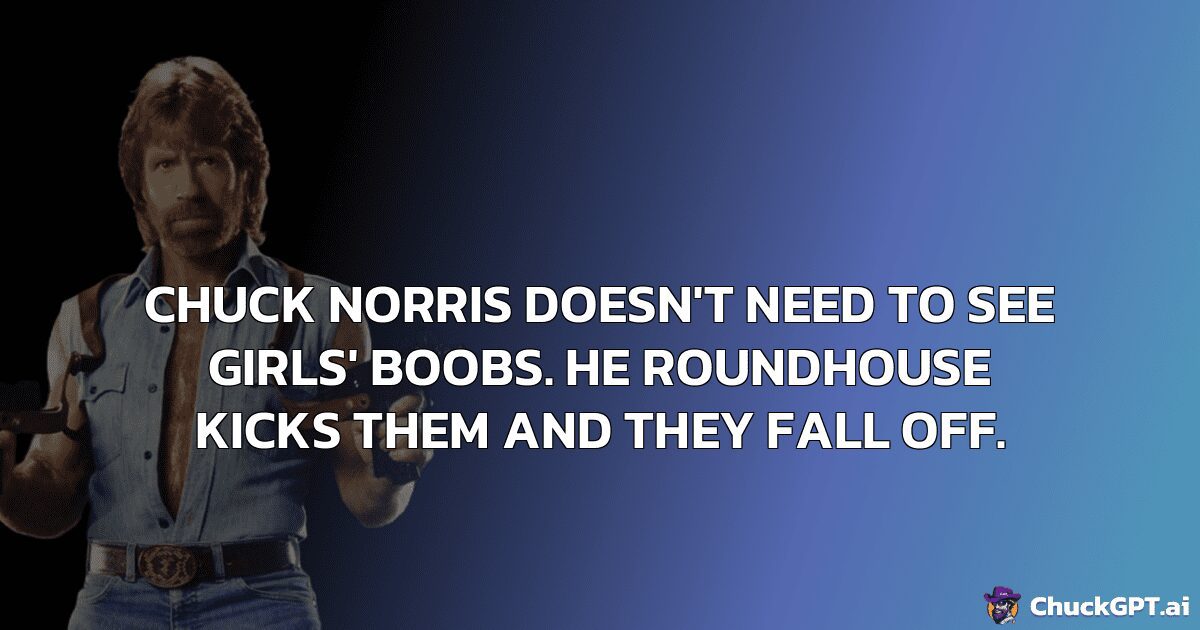 Chuck Norris doesn’t need to see girls’ boobs. He roundhouse kicks them and they fall off.