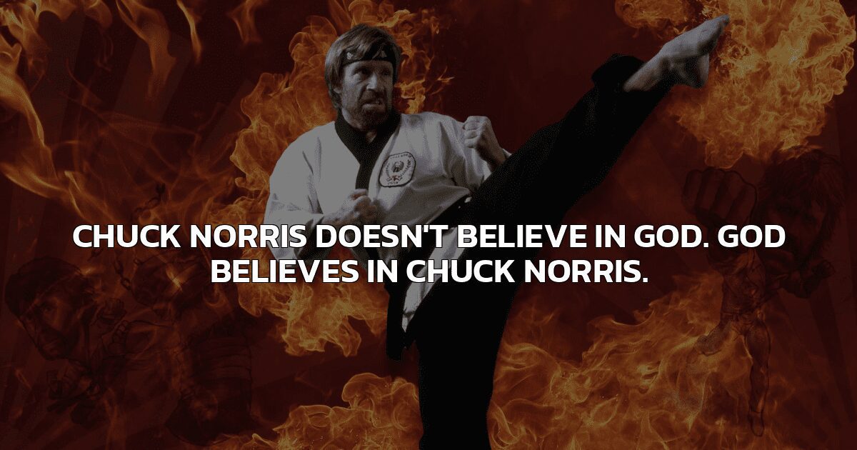 Chuck Norris doesn’t believe in God. God believes in Chuck Norris.