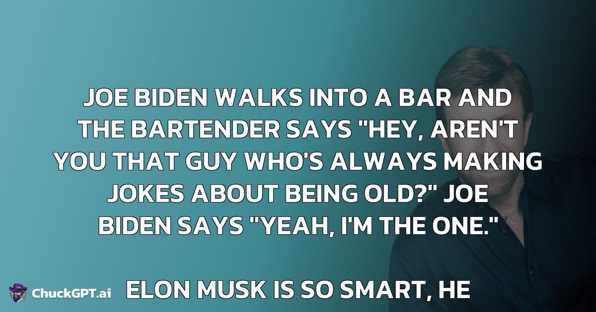 Joe Biden walks into a bar and the bartender says “Hey, aren’t you that guy who’s always making jokes about being old?” Joe Biden says “Yeah, I’m the one.”