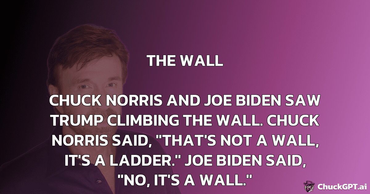 Chuck Norris and Joe Biden saw Trump climbing the wall. Chuck Norris said, “That’s not a wall, it’s a ladder.” Joe Biden said, “No, it’s a wall.”