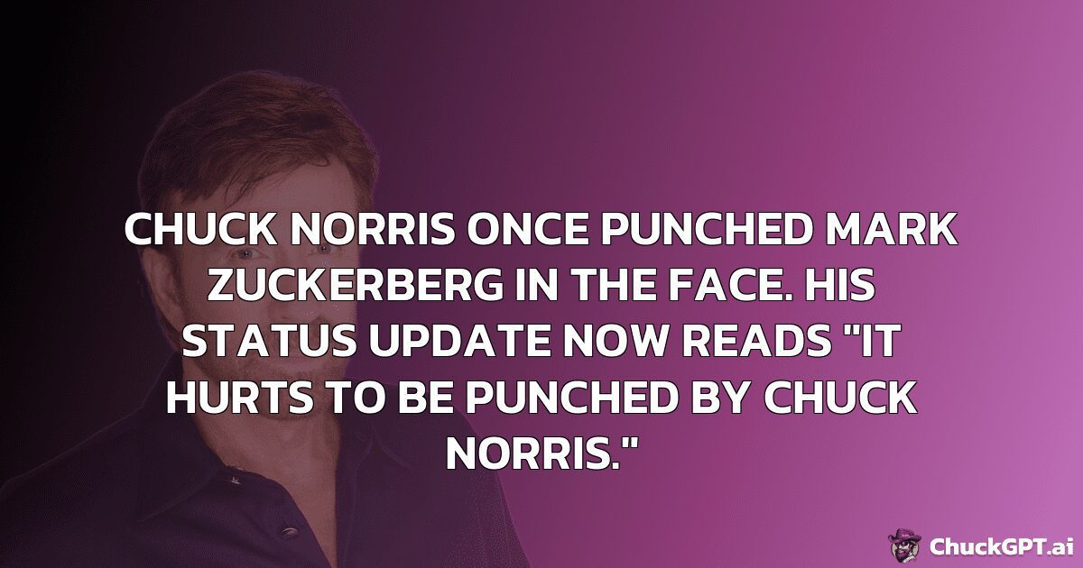 Chuck Norris once punched Mark Zuckerberg in the face. His status update now reads “It hurts to be punched by Chuck Norris.”
