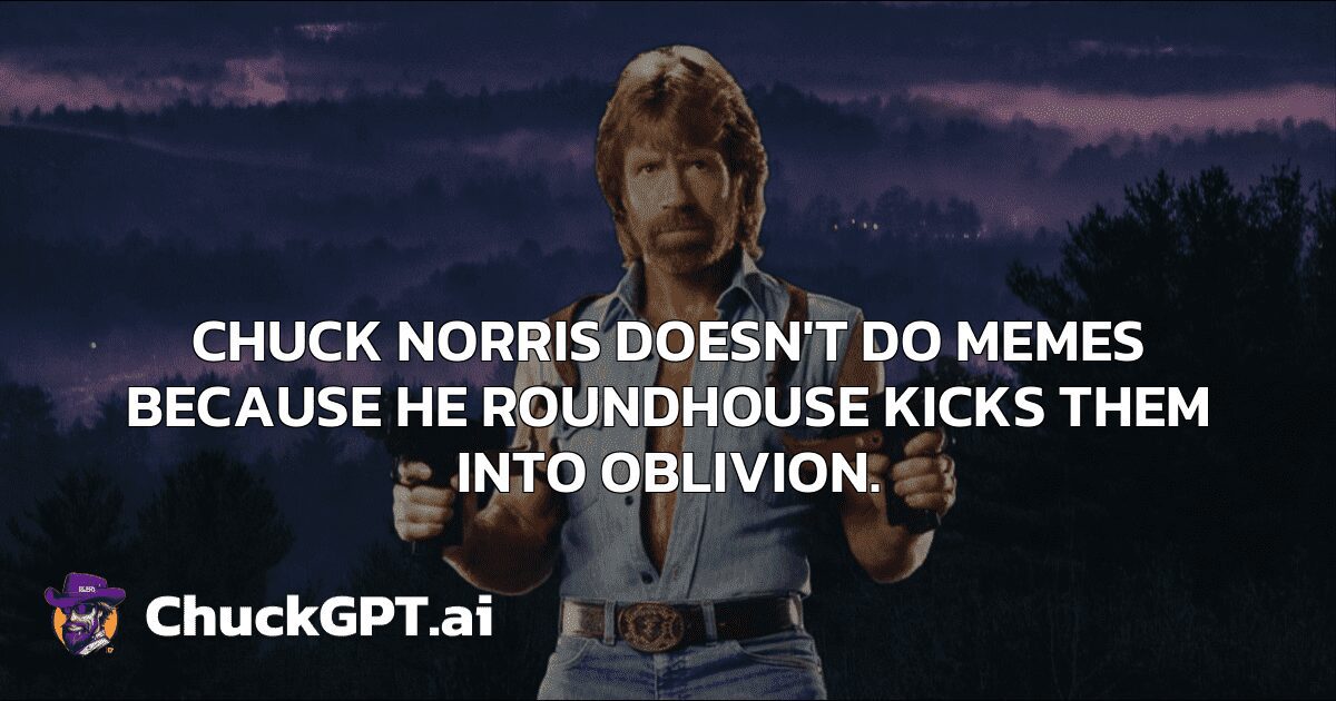 Chuck Norris doesn’t do memes because he roundhouse kicks them into oblivion.