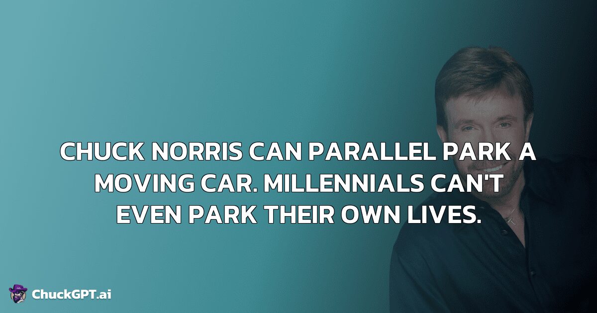 Chuck Norris can parallel park a moving car. Millennials can’t even park their own lives.