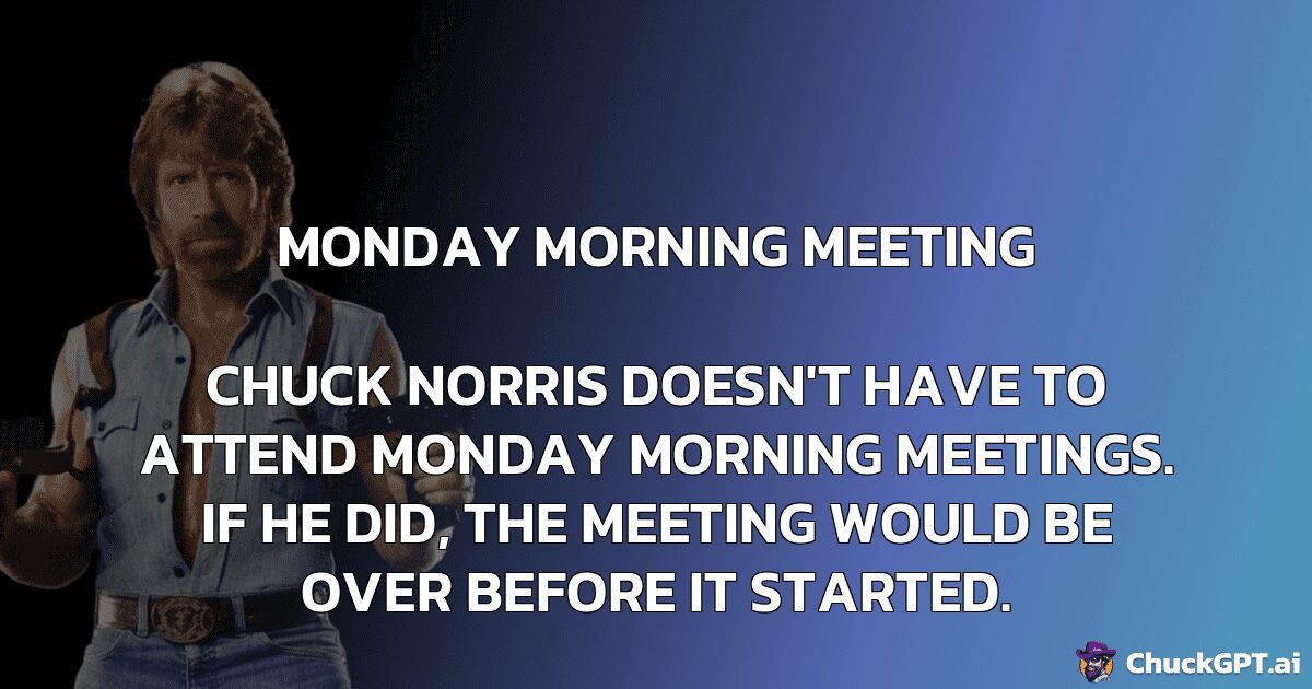 Chuck Norris doesn’t have to attend Monday morning meetings. If he did, the meeting would be over before it started.