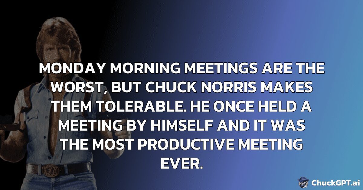 Monday morning meetings are the worst, but Chuck Norris makes them tolerable. He once held a meeting by himself and it was the most productive meeting ever.