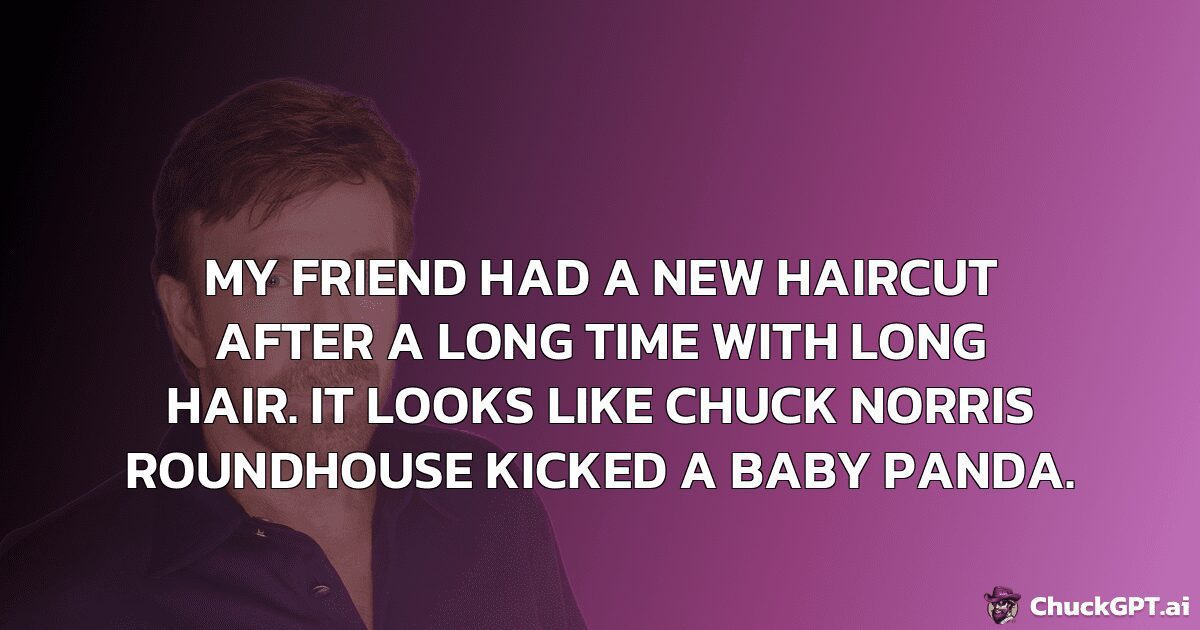 My friend had a new haircut after a long time with long hair. It looks like Chuck Norris roundhouse kicked a baby Panda.