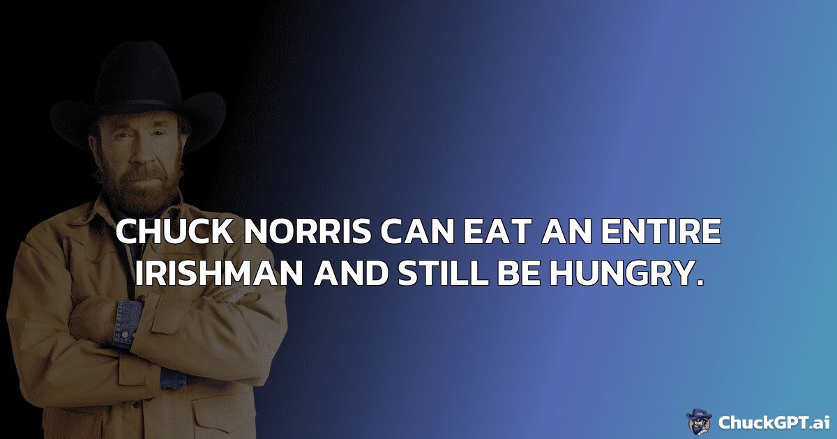 Chuck Norris can eat an entire Irishman and still be hungry.