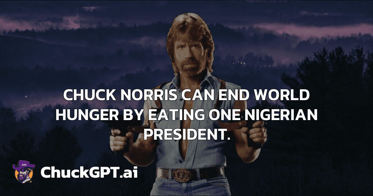 Chuck Norris can end world hunger by eating one Nigerian president.