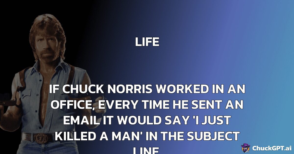 If Chuck Norris worked in an office, every time he sent an email it would say ‘I just killed a man’ in the subject line.