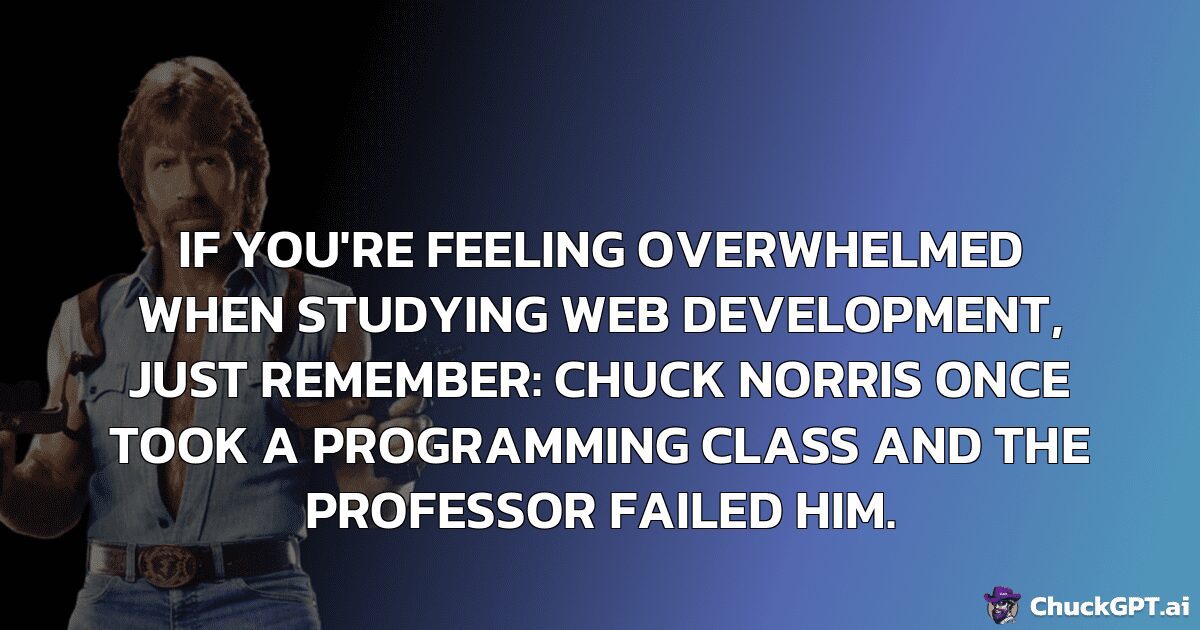 If you’re feeling overwhelmed when studying web development, just remember: Chuck Norris once took a programming class and the professor failed him.