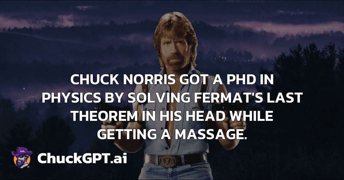Chuck Norris got a PhD in physics by solving Fermat’s Last Theorem in his head while getting a massage.