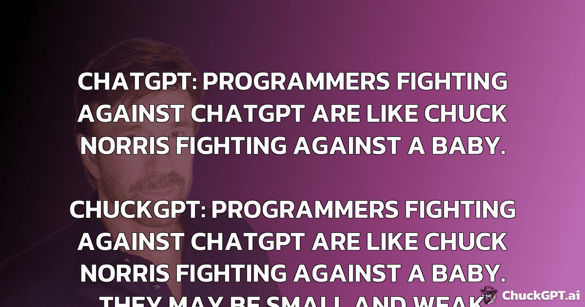 ChatGPT: Programmers fighting against ChatGPT are like Chuck Norris fighting against a baby.