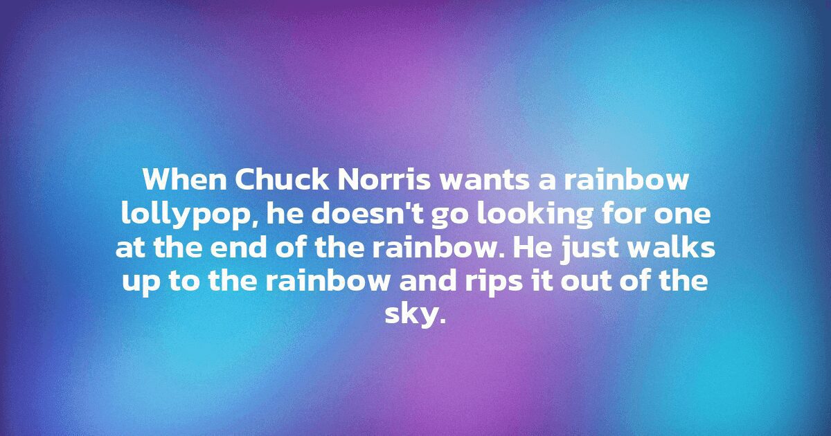 When Chuck Norris wants a rainbow lollypop, he doesn’t go looking for one at the end of the rainbow. He just walks up to the rainbow and rips it out of the sky.