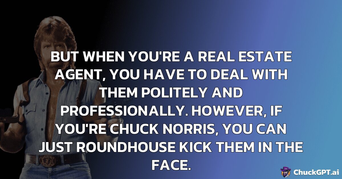 But when you’re a real estate agent, you have to deal with them politely and professionally. However, if you’re Chuck Norris, you can just roundhouse kick them in the face.
