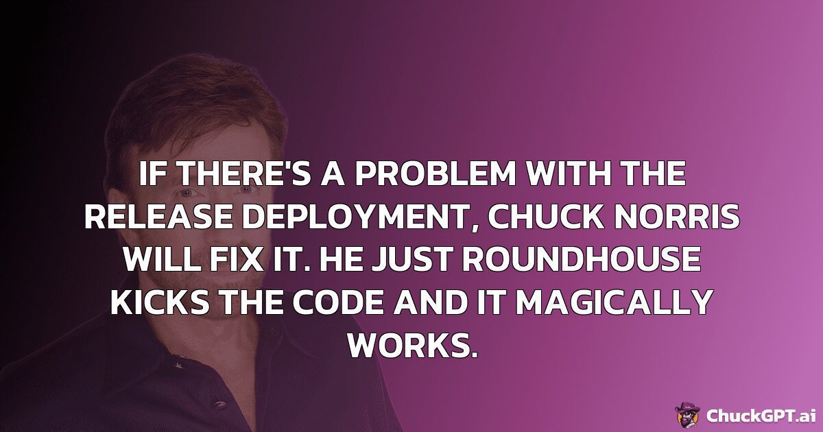 If there’s a problem with the release deployment, Chuck Norris will fix it. He just roundhouse kicks the code and it magically works.
