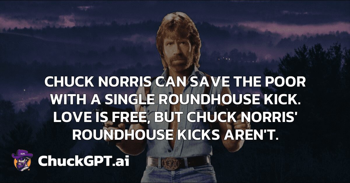 Chuck Norris can save the poor with a single roundhouse kick. Love is free, but Chuck Norris’ roundhouse kicks aren’t.