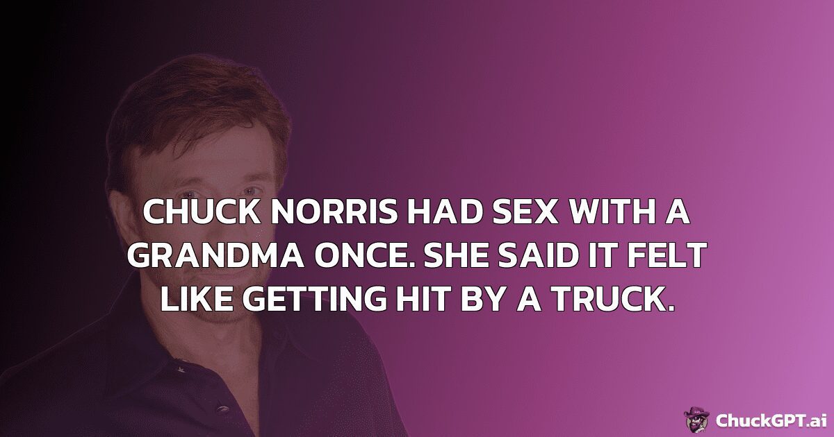 Chuck Norris had sex with a grandma once. She said it felt like getting hit by a truck.