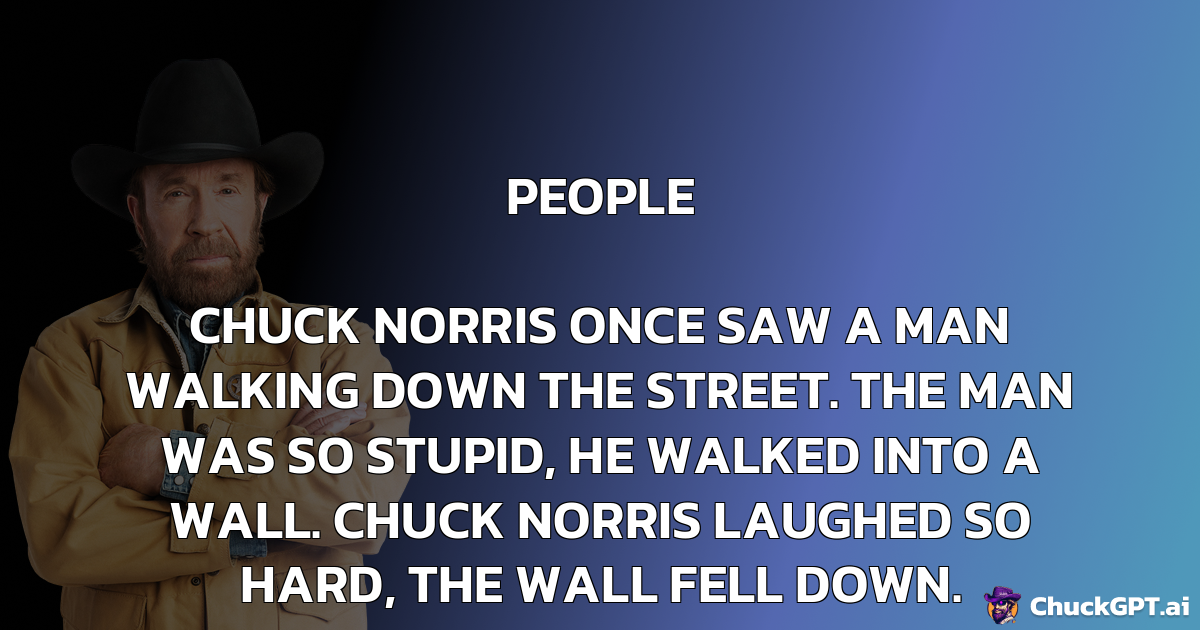 Chuck Norris once saw a man walking down the street. The man was so stupid, he walked into a wall. Chuck Norris laughed so hard, the wall fell down.