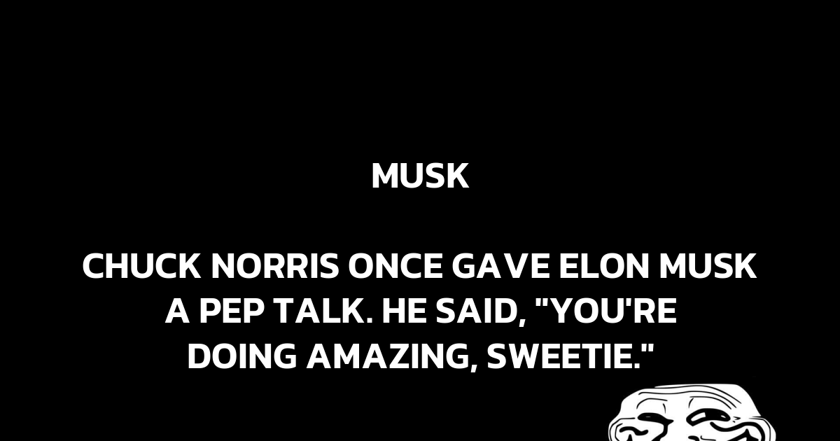 Chuck Norris once gave Elon Musk a pep talk. He said, “You’re doing amazing, sweetie.”