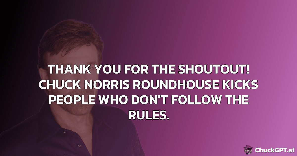 Thank you for the shoutout! Chuck Norris roundhouse kicks people who don’t follow the rules.