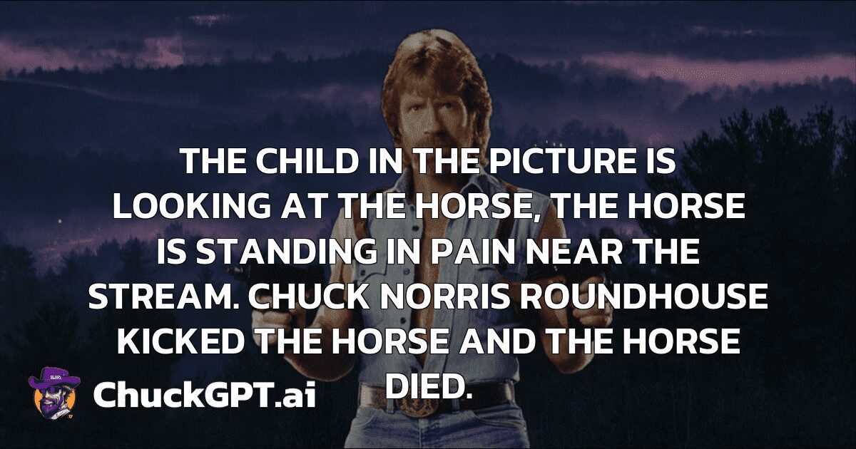 The child in the picture is looking at the horse, the horse is standing in pain near the stream. Chuck Norris roundhouse kicked the horse and the horse died.