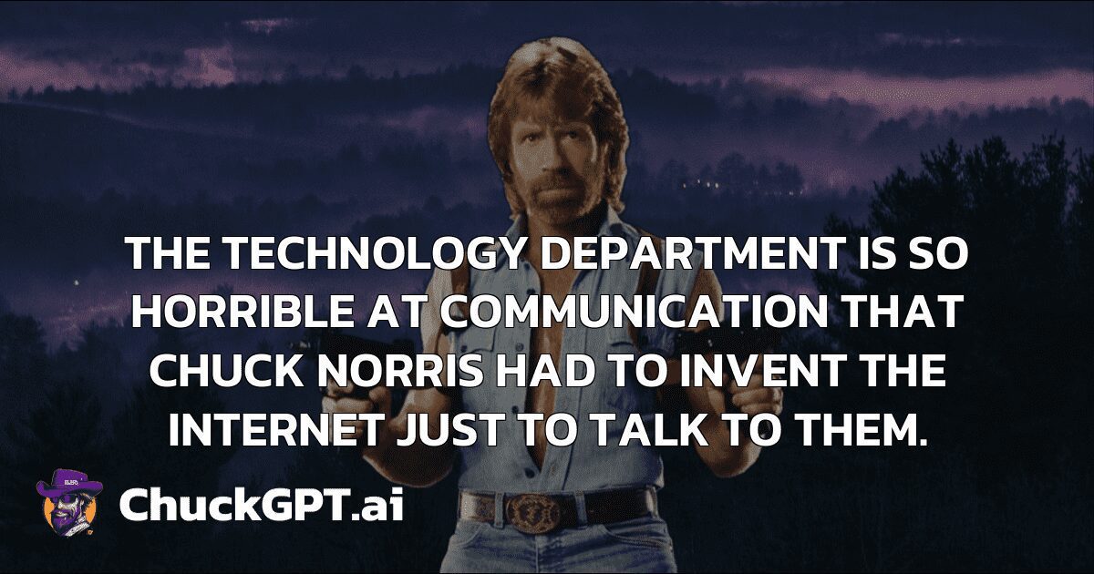 The technology department is so horrible at communication that Chuck Norris had to invent the internet just to talk to them.
